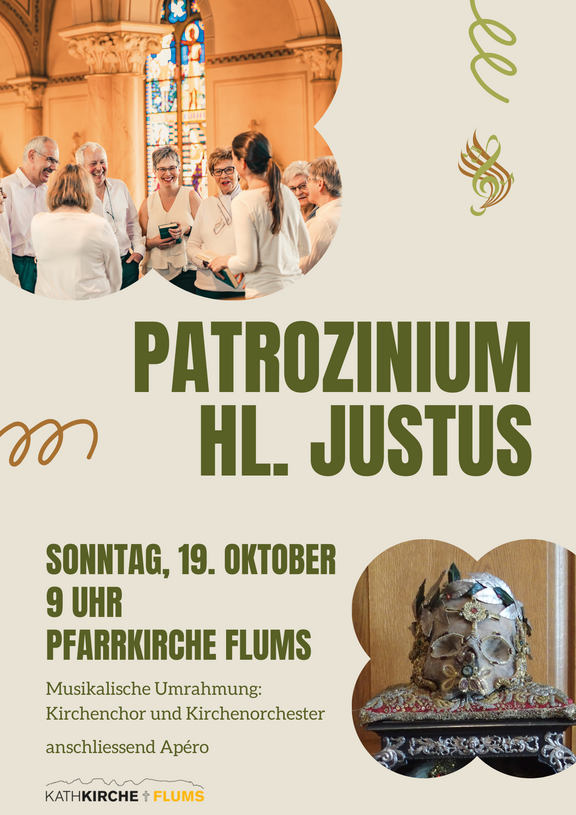 Zum Patrozinium des Hl. Justus wird das Fest musikalisch vom Kirchenchor und Kirchenorchester umrahmt. Im Anschluss sind alle herzlich zum Apéro eingeladen.