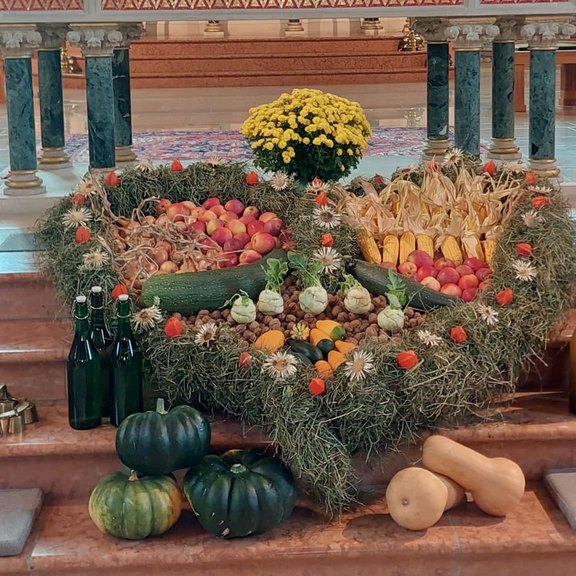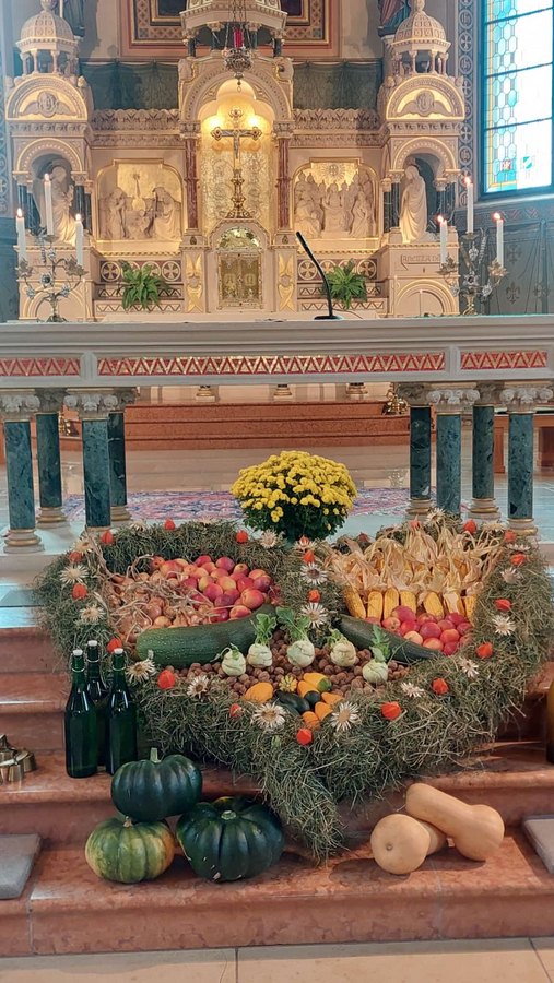 Am Sonntag 5. Oktober 2025 wurde in der Laurentiuskirche Erntedank gefeiert. Der Bäuerinnen-und Landfrauenverein Flums-Dorf gestaltete mit vielen selbstgemachten Produkten, Früchten, Lebensmitteln und verschiedenen Deko-Elementen eine wunderbare Kulisse in Herzform dazu. Der Ein- und Auszug wurde vom Schellnerclub Flumserberg begleitet. Pater Gregor bereitete den Gottesdienst zusammen mit Regina Schlegel und Michaela Kunz vor. Die Kinder Fiona, Nadine und Seraina halfen beim Vortragen der Texte und machten den Familiengottesdienst somit perfekt.