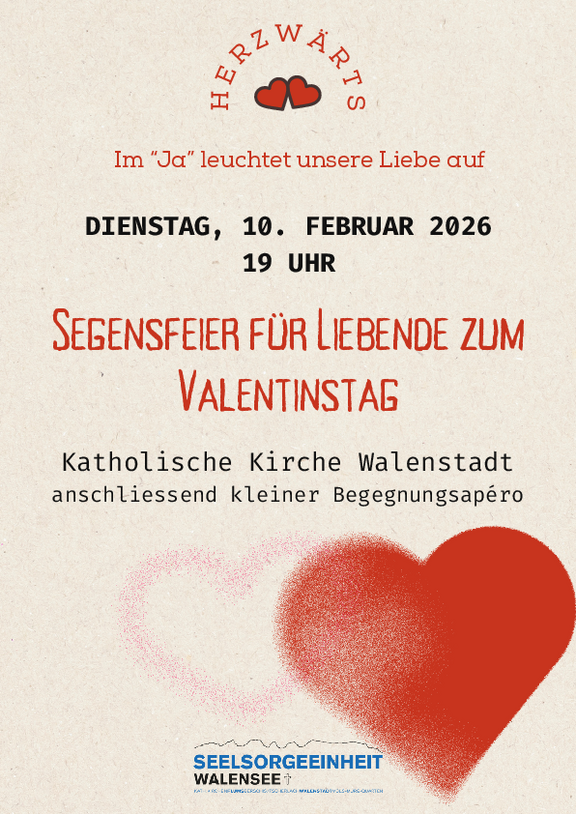 Ein Abend für alle Verliebten und Liebenden: Schenkt euch bewusst Zeit füreinander, stärkt eure Verbindung und stellt eure Partnerschaft unter den Segen Gottes. In einer liebevollen Atmosphäre feiern wir die Kraft der Beziehung – mit Musik, Symbolen und stillen Momenten. Musikalisch begleitet von Markus Egger. Anschliessend kleiner Begegnungsapéro.